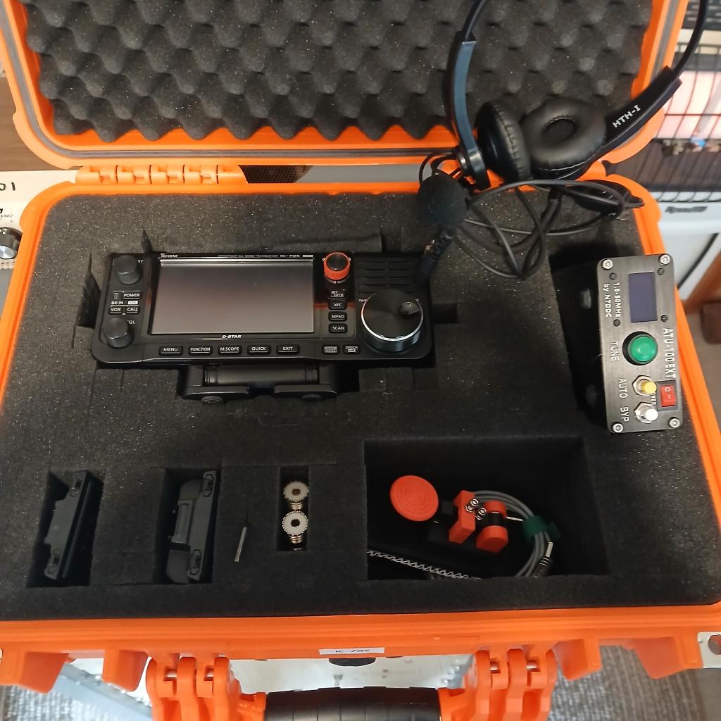 I would like to trade my IC-705 kit for an IC-9700. The IC-705 is in an orange Apache case and includes a cast aluminum tilt base, ATU-100 which was built by me from a kit to ensure quality and works great, original BP-272 as well as two extra aftermarket BP-307 high capacity batteries and charger for the batteries and a 3D printed straight key. Hand mic, plus a new Heil headset with PTT in the cord, gets great audio reports. . Also has the USB-C/Send upgrade board. I also have the original box in addition to the Apache case. I am in southern Oklahoma and would be willing to travel a reasonable distance to make a face to face trade.