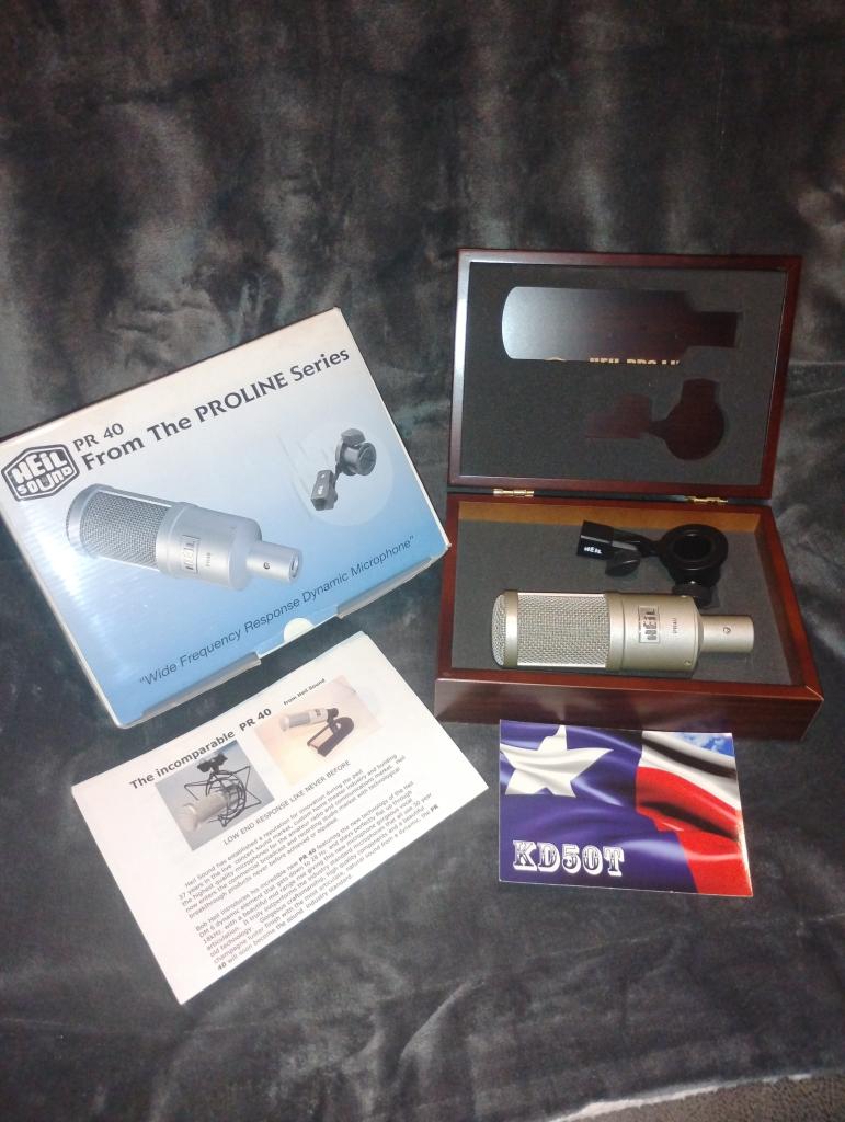 This Heil PR-40 is as New in Champagne finish and includes everything included when shipped including the beautiful Cherry Wood Collectors storage box.