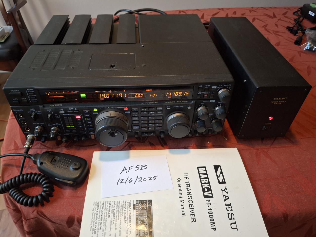 Very nice FT-1000MP MkV (Class A possible, with 200w rated finals) with external power supply, SSB and CW Collins filters, TCXO, original manual and hand mic. Classic, near collectible condition, smoke-free, pet-free history. Unit was upgraded by Byron Campbell, including the LED display. Prefer not to ship, but can ship via USPS Ground Advantage in original double-boxes. $995 plus shipping, will take all normal payment methods. Unit is working well, but I cannot accept returns due to part swappers.