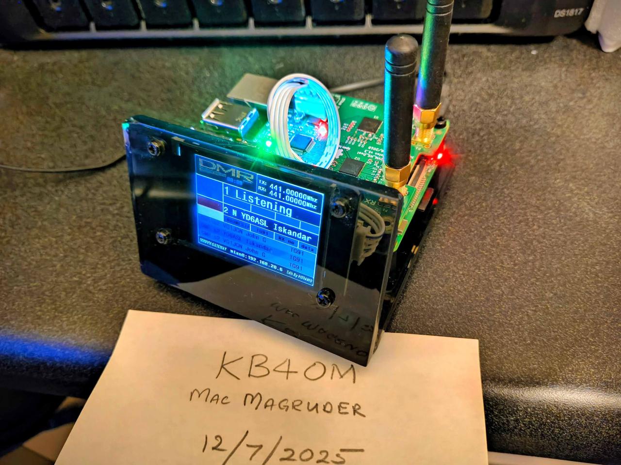 For Sale: MMDVM hotspot with 2.2 inch color screen in a smoked plexiglass stand, built on a raspberry pi 3B w/dual hat modem. More than 10 available.