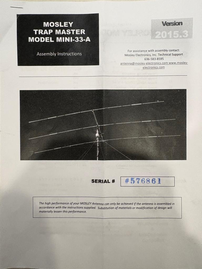 Well I have too many hobbies so the Mosely beam antenna is up for sale. I purchased it 4 months ago and mounted it in the attic. So it was never exposed to the elements. It set me back $775 and there was a 2 month wait time. It's still in the attic so I will provide pictures upon request very soon. My asking price is $500 (and no waiting).