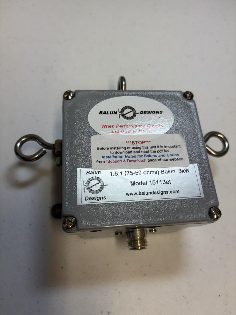 New in Box (never used) Balun Designs 15113et N-connector, 75 Ohm to 50 Ohm balun, 3kW rating. $75 shipped continental 48 USA.