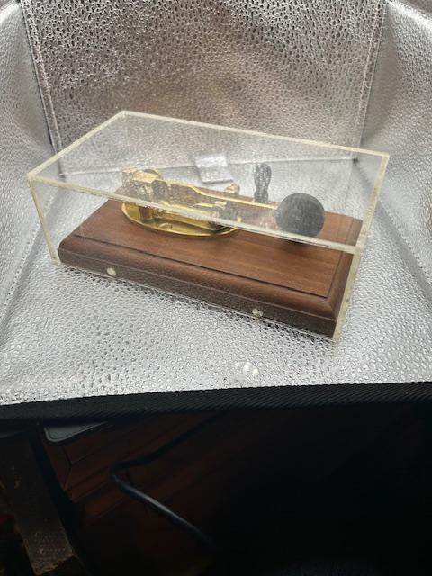 The key looks to me as if it were in a museum, since the plexiglass cover has no exit for the wires. I, of course, took it out of the case to polish a bit (using a soft toothbrush & Barkeepers Friend), but not too much, not wanting to destroy any patina. It has surface scratches, but nothing to me looks below the finish.