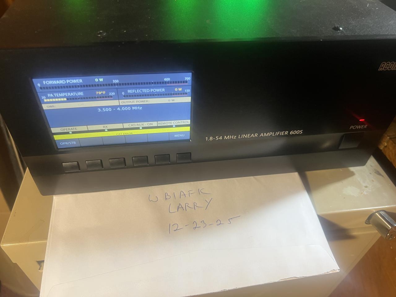 Nice Acom 600s solid state amplifier. Currently wired 220v. Peaks over 400 watts SSB on 75 meters with 8 watts drive from my IC-705. Nice amp. Works flawlessly. $1950 shipped in original box by FedEx ground. Zelle preferred but PayPal ok.