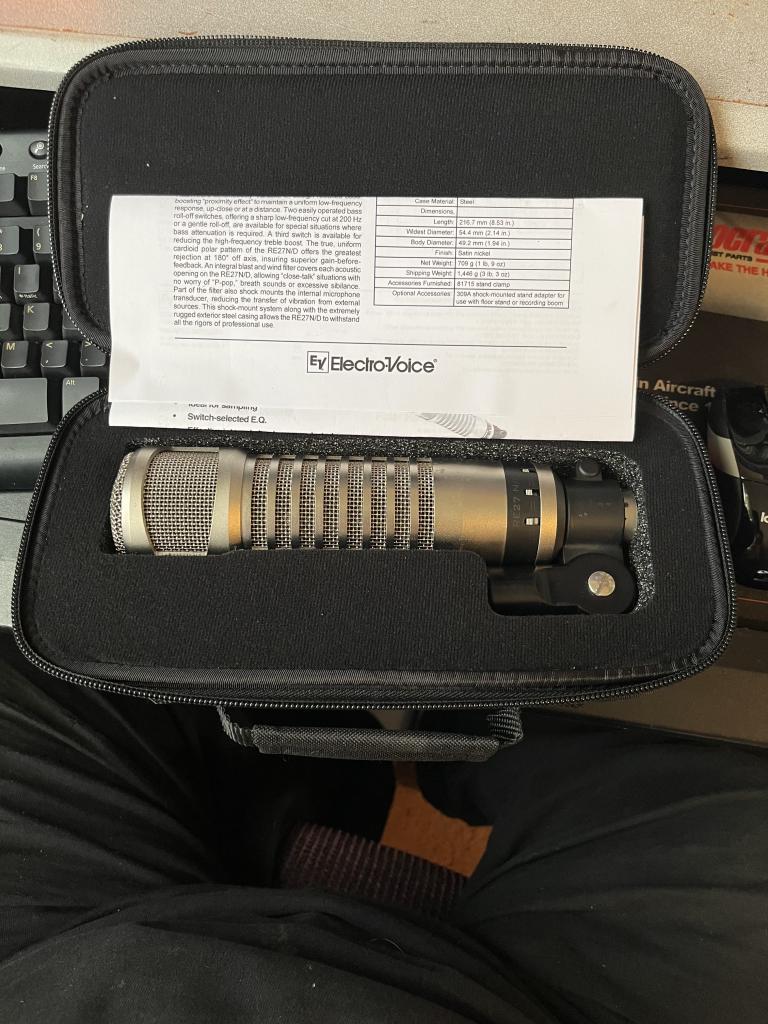 For sale is a brand new Electro Voice RE27 N/D mike in case. This mike was bought and never used. Lowest price I found online was 499. I will sell it for 325.00 which includes shipping. Like I said it is new as seen in picture. Email with questions.
