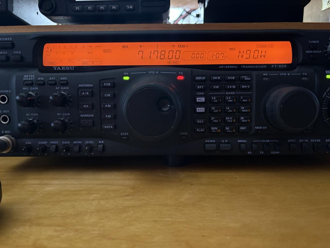 Yaesu FT-920 160-6 Meters. Works as it should, I have been told by previous owner that it does have an issue when using on DATA Mode, all other modes work great! Cosmetically the face is clean, a few scratches on the top case. It is missing the 2 rear feet which never mattered to me! It is from a smoke free shack! I am only selling it because I have other HF rigs and it never gets used anymore. It comes with Mic, Power Cord and Manual. I prefer a face to face deal because it is heavy $475.00 but I will ship via Fedex using Paypal or Postal Money Order to your door (CONUS) with insurance for $525.00 73 De Mike N9OW