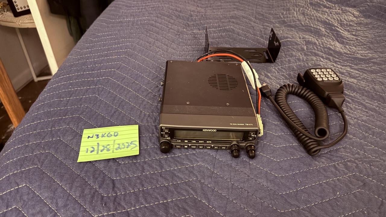 For sale is a Kenwood TM-V71A in working condition. Has been factory MARS modified. Comes complete with mounting bracket, microphone and power cable (not pictured). Any questions, please ask. Payments accepted via USPS Money Order or PayPal. No returns accepted after item is shipped out.