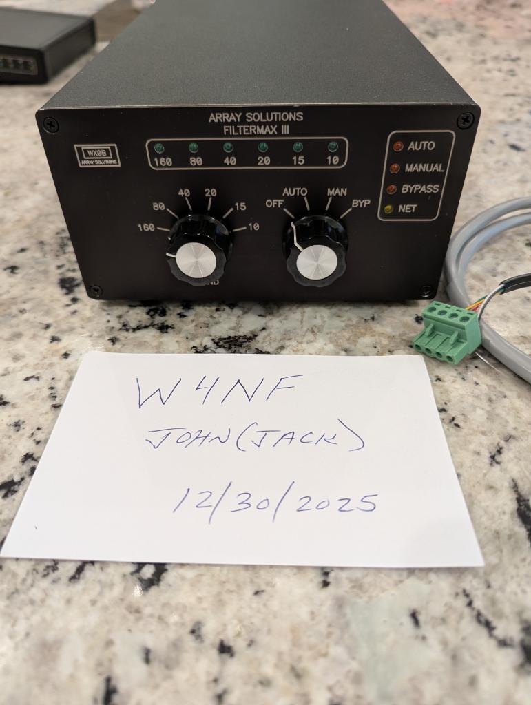 FilterMax III 6 Band high-performance band-pass filter (W3NQN design) in a single package and comes with filters for 160, 80, 40, 20, 15 and 10 meters. The filters are rated at 200 watts. The filters can be selected automatically or manually. There is also a selection for bypassing the filters.