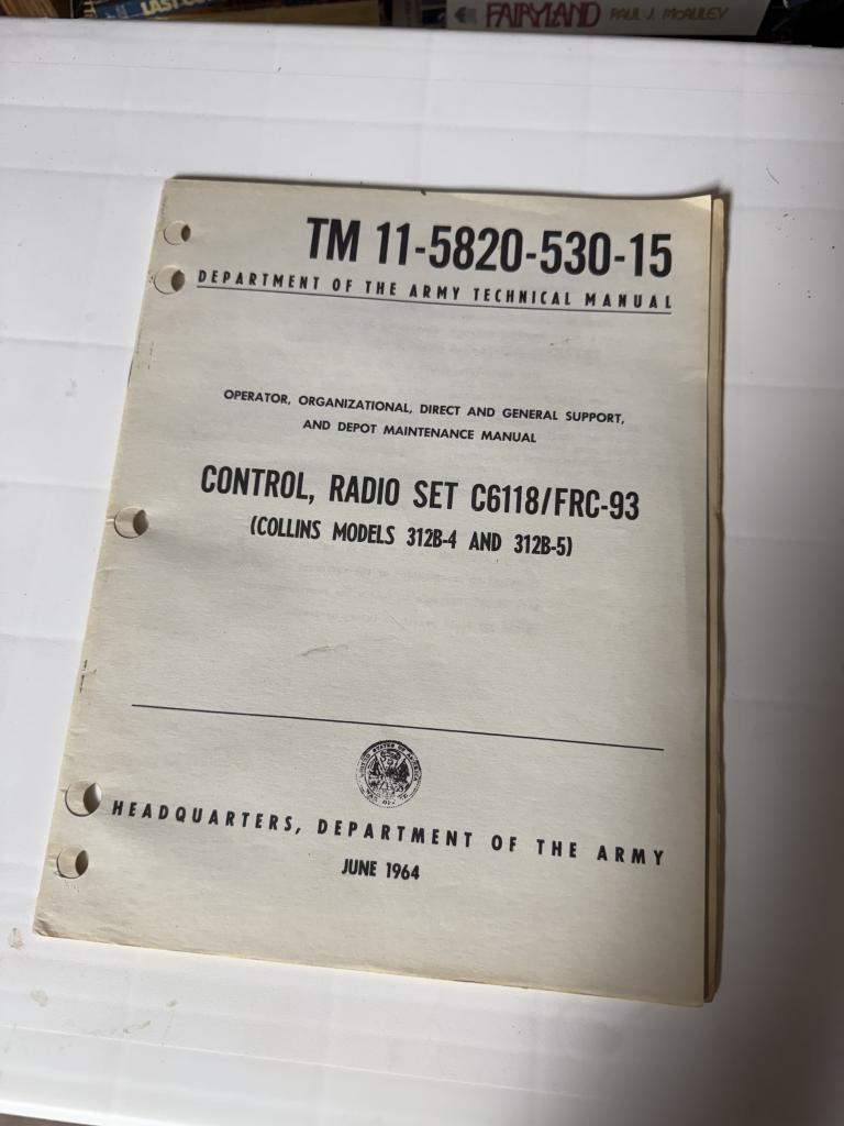 Sale Pending———Original Army TM 11-5820-530-15 Operator and Maintenance Manual and C1 Update for the Collins 312B-4 Station control and 312B-5 VFO. In good shape with parts lists, pictorials, schematics, etc. $15 plus shipping. Local pickup available in 38478.