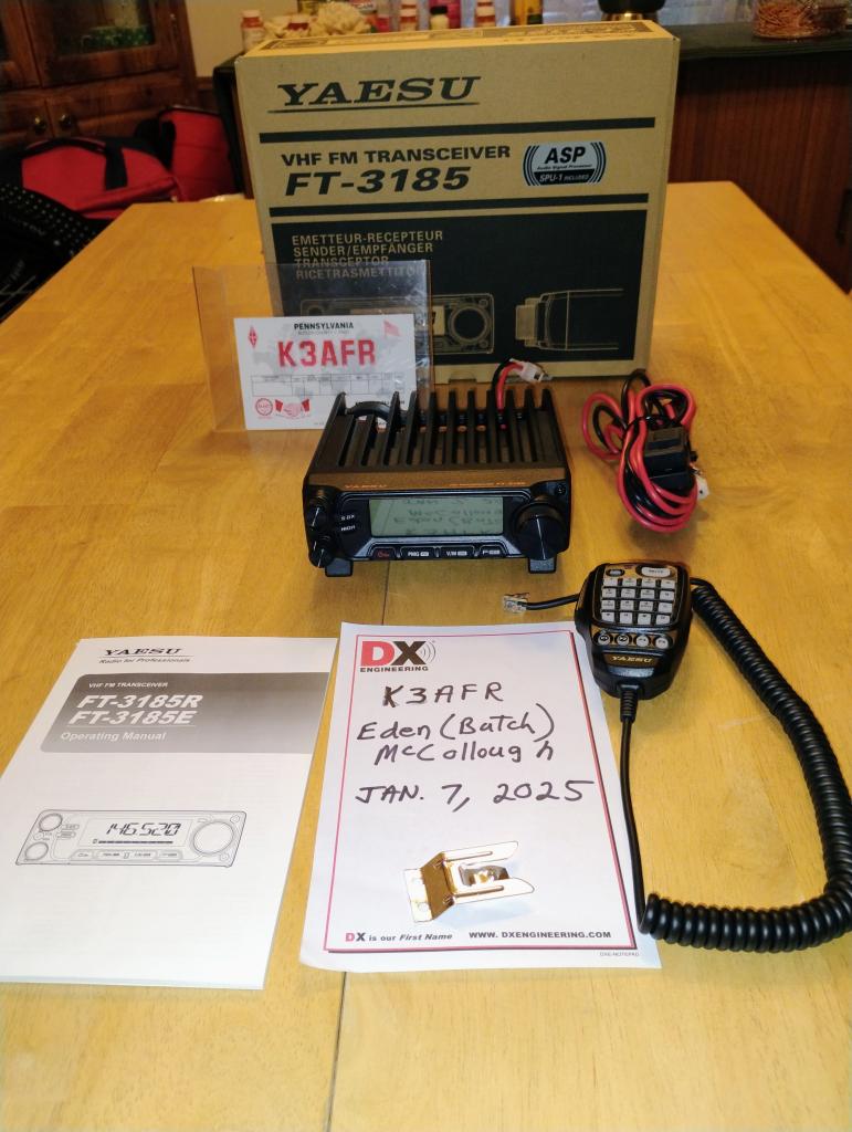 I have an almost Brand New Yaesu FT-3185 ASP, 85 Watt, 2 meter only mobile/base transceiver for sale. It is only less than two months old with the rest of the 3 Year Warranty remaining! The ASP version of this rig Includes the SPU-1 Audio Signal Processor..factory installed! This 85 watt radio looks and works like new..and has been barely used at all. My plans have changed so this nearly new rig is for sale with box, mic, manual, mobile bracket, and power cable. Only $199 Shipped Free and NO TAX! Could meet and greet within a practical and agreed upon location.