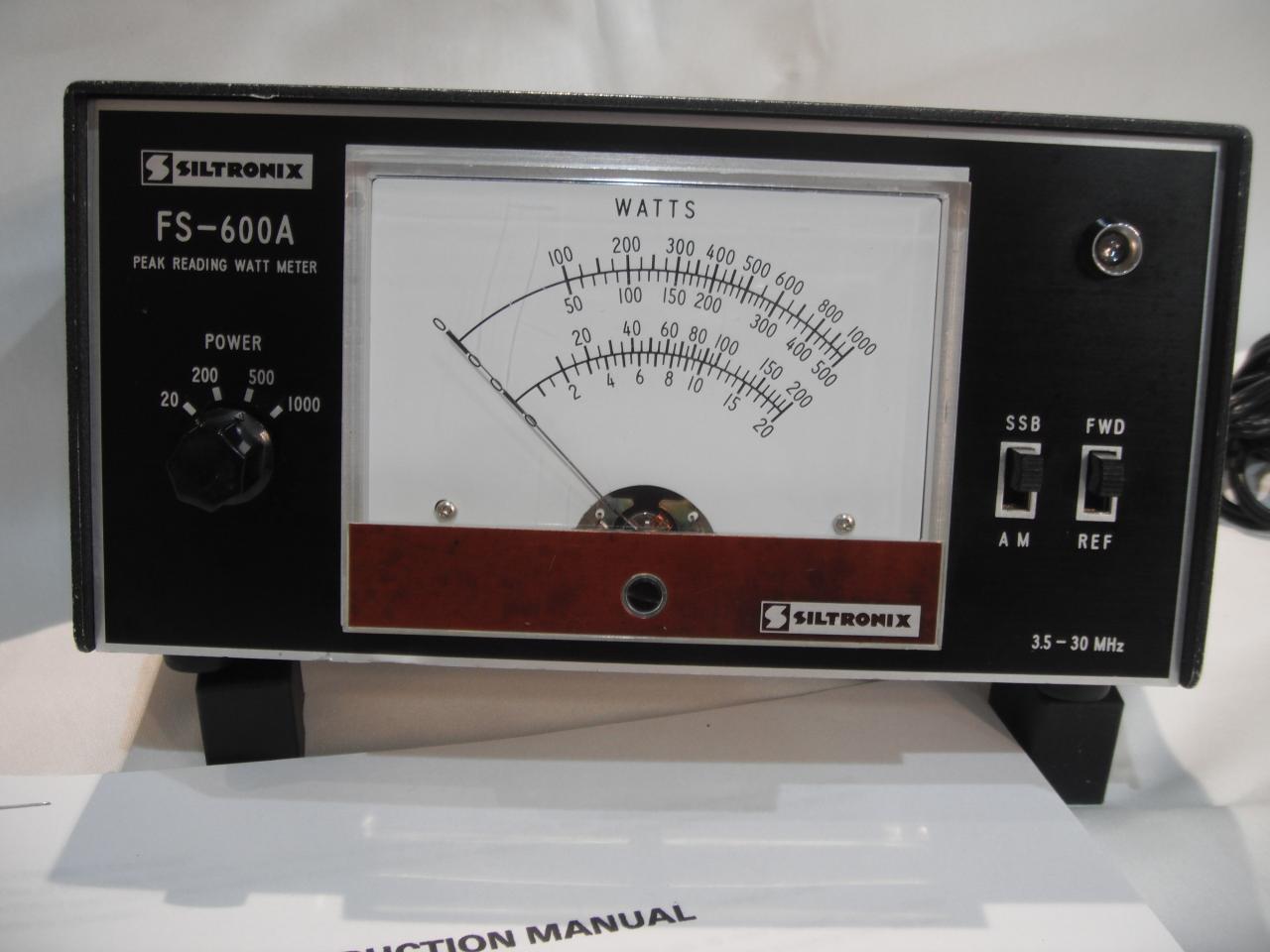 : Offered is a Siltronix FS-600A PEAK/AVERAGE reading Power and SWR meter. This meter is virtually identical to the Swan WM-2000A and the WM-3000 as well as the Yaesu YS-2000. This meter has been professionally restored and aligned. It is in very fine condition both physically and electronically showing virtually no signs of use or age. This meter has 4 power ranges (20, 200, 500 and 1000 watt) which can be displayed in either Average or PEAK reading as switched from the front control. This meter has a frequency range of 3.5 to 30 MHZ. Included is a copy of the original operating manual. Please contact me for additional pictures/information. Priced at $125.00 or reasonable offer. Payment by USPS money order or personal check. Sorry, no PayPal.