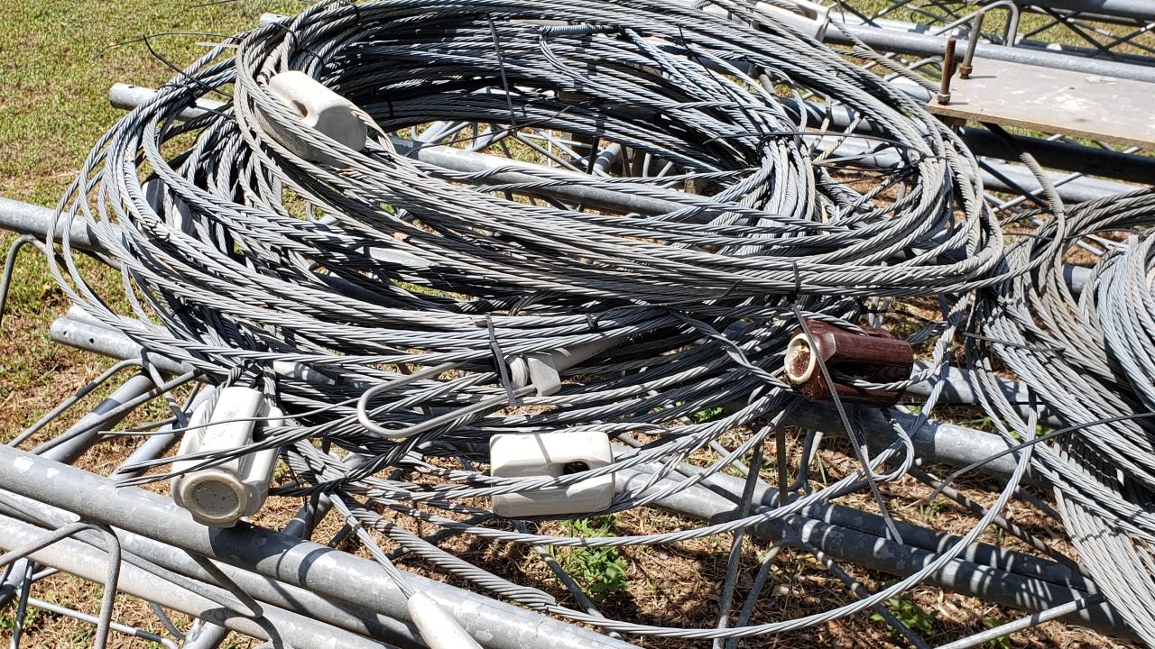 Have several 3/16" guy wire sections with or without insulators no rust. Various lengths are labeled. Make me an offer of what you need. Local pick in Bryan Texas. No insulators lengths 3 x 80', 2 x 115', 110', 90', 75'. With insulators 90', 4 x 80' 2 x 75'.