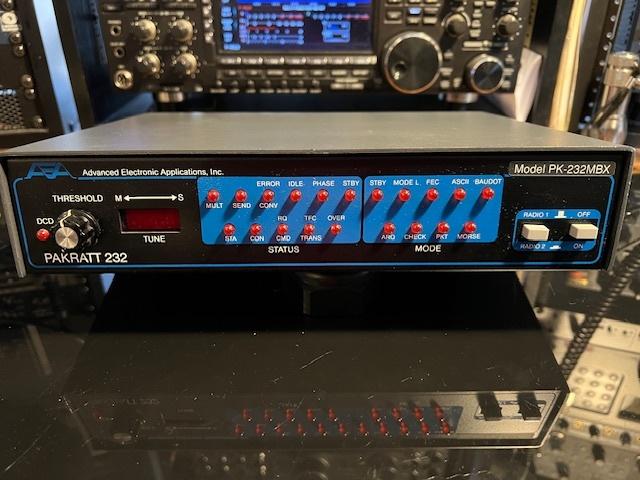 For Sale: TIMEWAVE PK-232MBX Multi-Mode TNC. Provides six modes including weather fax, Morse code, Baudot RTTY, ASCII, AMTOR and Packet. Two radio ports on the back panel allows easy HF/VHF radio selection switching from the front panel. Only a simple PC terminal emulation program is required to interface to the PK-232. In excellent physical and electrical condition. $70 shipped. Payment by cash, USPO money order, or Zelle (preferred). Sale is final, no returns. Reply to W3BV at yahoo.com or via QRZ message.