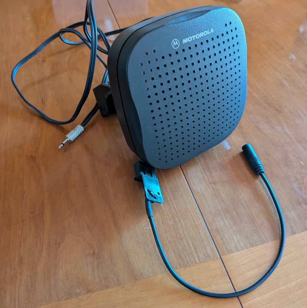 Very nice Motorola HSN4039A speaker terminated with 3.5 mm mono plug. Includes mounting bracket and adapter cable for use with Motorola mobile radios. $30 shipped CONUS.