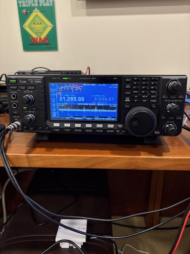 Excellent condition Icom IC-7600 HF/6M XCVR. Includes mic, power cord, manual, Icom IC-7600 sales brochure and factory inner & outer shipping boxes. Seller is original owner and the radio has been in a smoke and pet free QTH. Radio is located in Northern Virginia near WDC.