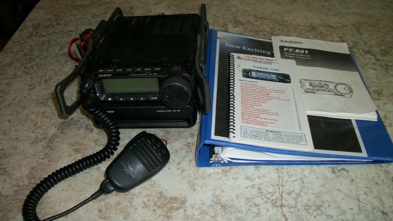 Yaesu FT-891 Does all of HF plus 6 Meters. Has the Yaesu FC-50 automatic antenna tuner attached. Also has Carbon Fiber protection rails that protect the front and rear controls/attachments. Comes with the original manual and a larger copy of the manual in a binder. Also included is a “Nifty Manual” for easy info. Comes with the microphone and DC power cord. In great shape, $600 plus shipping, CONUS. Not interested in trades.