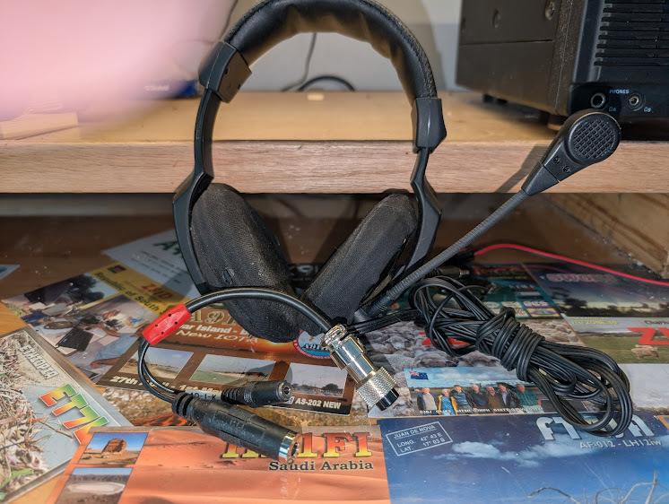 Heil Proset with Kenwood/Elecraft adapter. Could use new earpad covers and windscreen.
