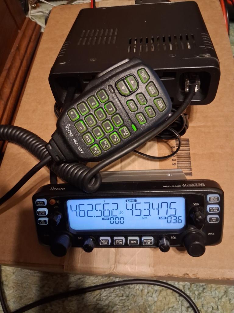 Hello everyone,...I have up for sale a “half working” IC-2730 dual band mobile style transceiver. With this particular radio, the 144mhz side is dead, no transmit or receive. However, the 440mhz side is fully functional. I was aware of this issue when I purchased as I planned to only use the 440 side for monitoring and a couple repeaters. Radio will include: main radio body, front display face/control panel, hand mic and separation cable. This radio can receive and display two different 440 frequencies simultaneously. It is not modded to transmit out of band but does receive out of band. If you operate much 440mhz in your area, this is a fine candidate. Asking $135 including shipping the U.S. Thanks & 73,...Tim (K8TBS)