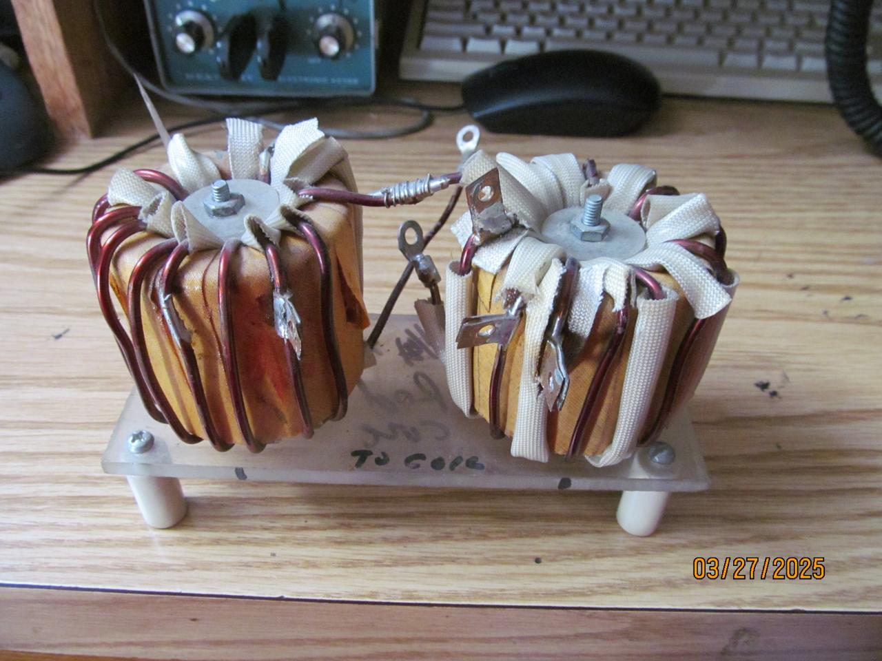 4- T225A RED CORES 2.25 X 1" CORES MOUNTED ON PLEXIGLASS SHEET, TOTAL UH 19.3 UH MAKE OFFER.