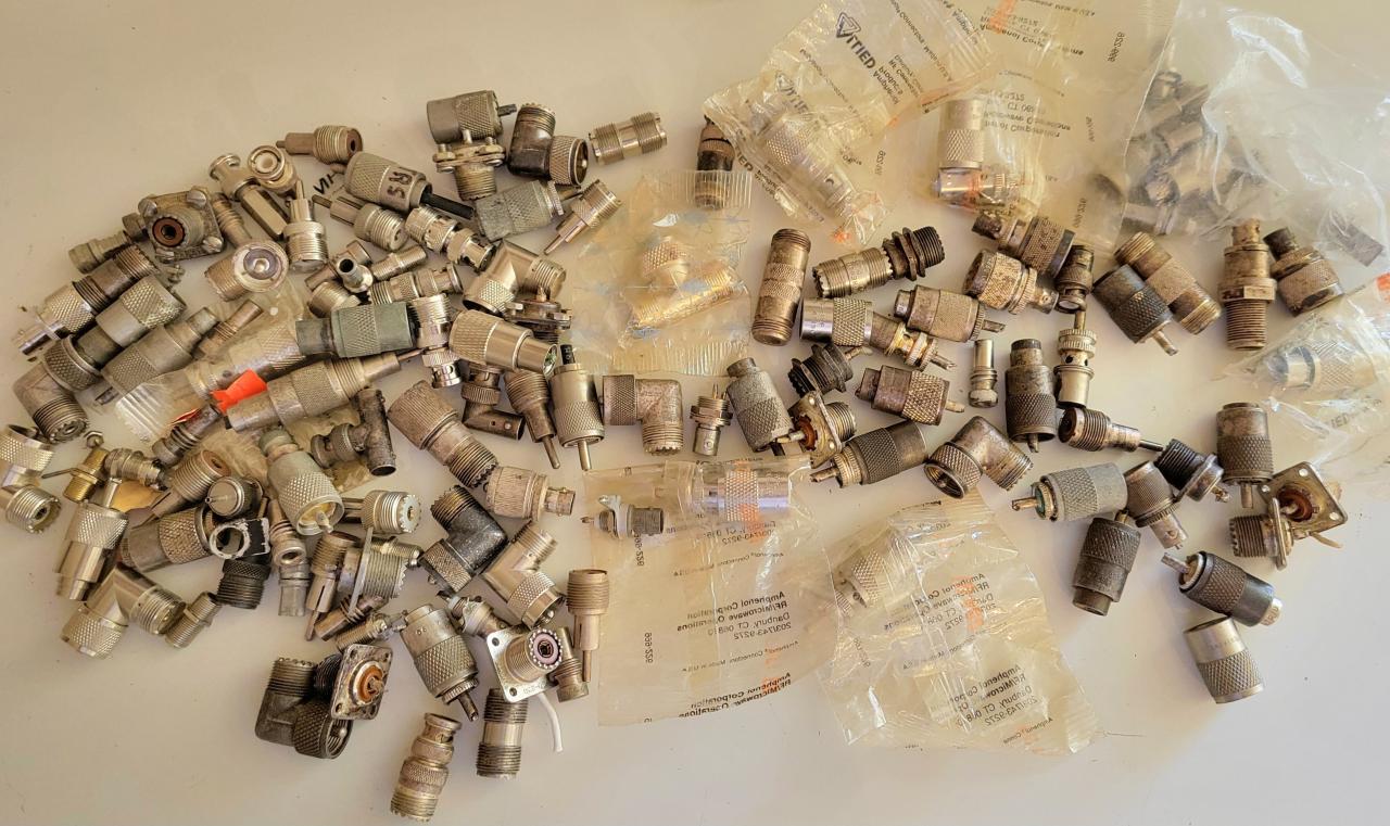 Large lot of antenna connectors from my father's estate. Looks like a lot of them are silver plated. See photo.