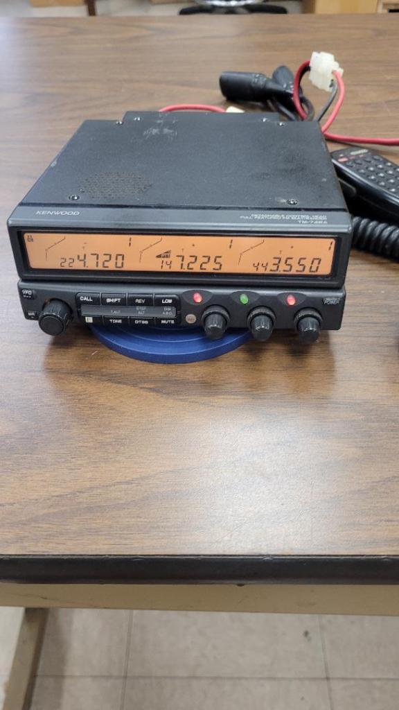 The TM-742A 2m/440 radio with a 220 MHz module and ctcss board. This radio works great and has a very clean face. Some marks on the top case.