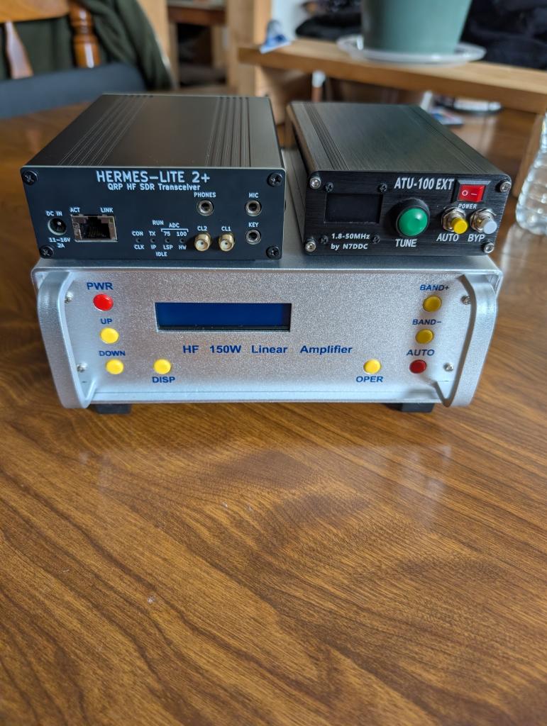 I have a nearly new Hermes Lite 2 with the 2+ add on board and filter board. I also have a nearly new RS-928 150W amplifier and 100W ATU I would like to sell as a bundle. Asking $600 plus shipping. All Items are only about two months old, looks and works like new. I will include all power cords and a keying interface for the amp. This works best on Windows and I do not use Windows so it needs to go. This will be sold as is with no returns. I take PayPal friends and family or money order