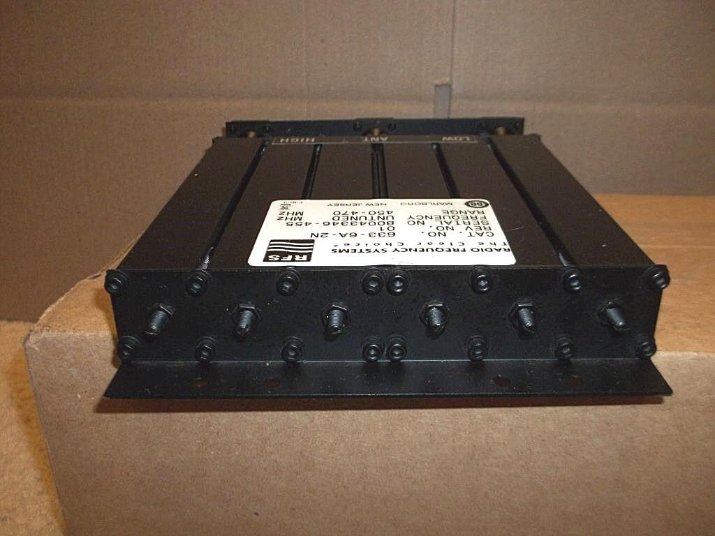 FOR SALE: I have several of these RFS model 633-6A-2N 50-watt UHF duplexers. Tuning range is 450 to 470 MHz. Some hams have these working on the 70 cm ham band with a simple inexpensive modification. I have the procedure information, but I never tried it. Also great for GMRS. Unit has "N" connectors. These duplexers are in very good condition. Removed from retired working repeaters.