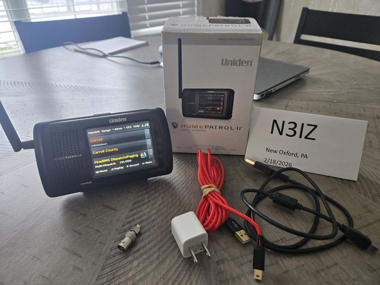 Included in the Box: HomePatrol-2 Scanner, Antenna, Desk Stand, 2 USB Cables, 4 x AA Batteries, SMA-to-BNC Adapter. $325 and will ship for free to the lower 48 States. PayPal or Venmo only, please.