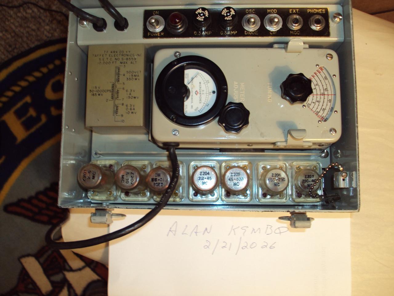 From an SK Estate, this PRM-10 made by Stamford Electronics and Taffet Radio & TV is in excellent cosmetic condition, Powers on, and passed the Meter Deflection initial check per the manual. It is a militarized Grid Dip meter and Signal Generator test oscillator, with all coils covering 2-400 MHz. It has a built-in power supply that uses 105-125 VAC. Although all tubes light up, it was not tested in either the grid-dip or Oscillator mode. Package include a Manual Copy. Dimensions: 11.5 l x 9.5w x 5h”; 13 lbs. Price: $245 shipped. Paypal accepted. Contact Alan K9MBQ in Charlottesville, VA