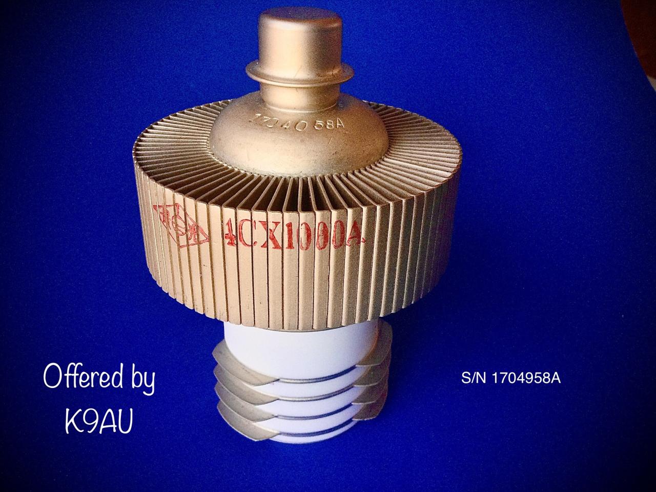 I am selling one 4CX1000A tube that I had kept as a spare to my ACOM A1500 amplifier. I sold the amplifier about a year ago and no longer have a need for this spare. It performed very well in the ACOM1500 and was my backup tube. I am asking $360 shipped and insured to anywhere in the continental USA. I accept Personal Check, Postal Money Order or PayPal (Friends and Family).