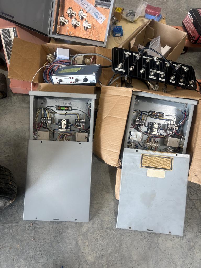 This box has the relays , timers , fuse and switch where you can operate it at the tower or remotely from your shack. The Blue control box shown for in the shack DOES NOT Go !!would need to fabricate a since set of switches for inside if you want to operate remote.