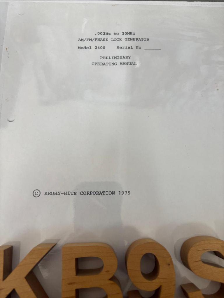 Model 2400 AM/FM/ Phase Lock Generator manual in binder. Sold generator and forgot about manual. $10 shipped.