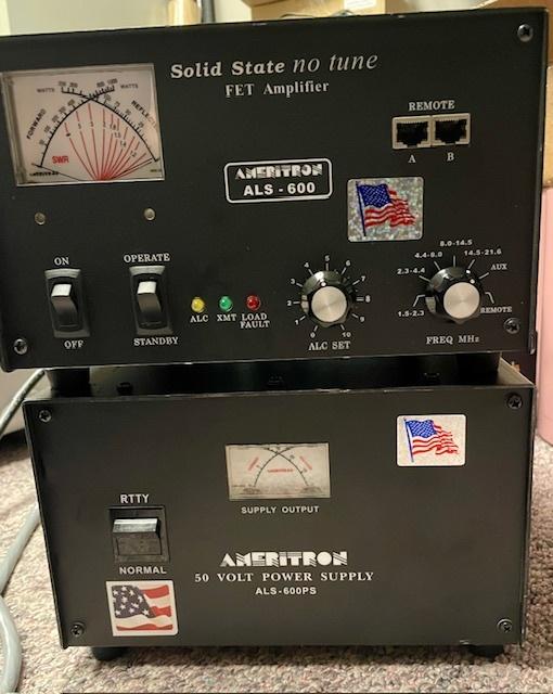 Ameritron ALS-600 Amplifier. Rated 160-15M, 600 watts PEP, 400 watts CW. I do not believe this one has the 12-10M modification, but have not opened it to check (the AUX position is silent on receive, indicating that the mod has not been installed). Amp works and and appears to be operational, but sold as is. $875. Will ship at your cost, prefer pick-up in St. Louis, MO. US only. Lou, W0FK