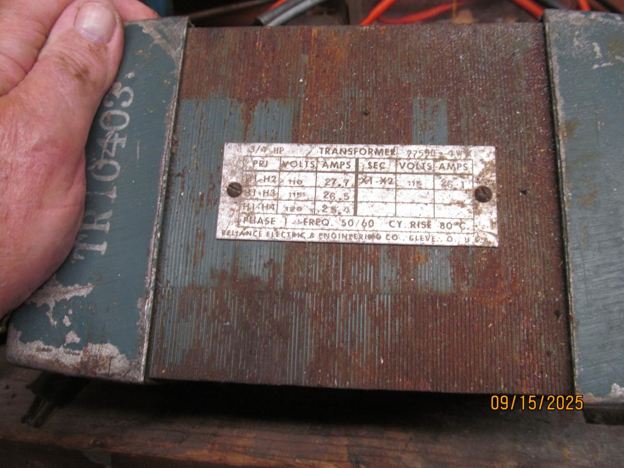26.5 amp primary at 120 vac, Secondary 110/115/120/125 VAC Transformer.