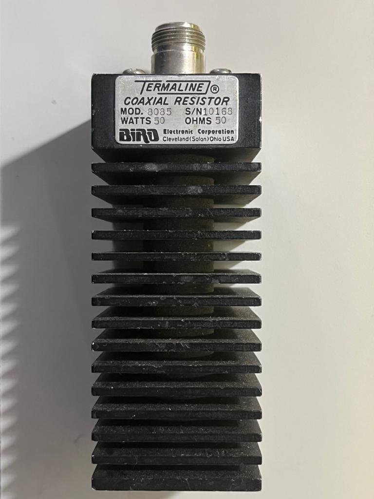 BIRD dummy load, model 8085, a 50 watt loads, good from DC to 3.5 GHz. This load currently has an N female c connector on it (which is recommended for this full frequency range) but if you want some other connector, let me know your preference. $50 shipped in the USA.