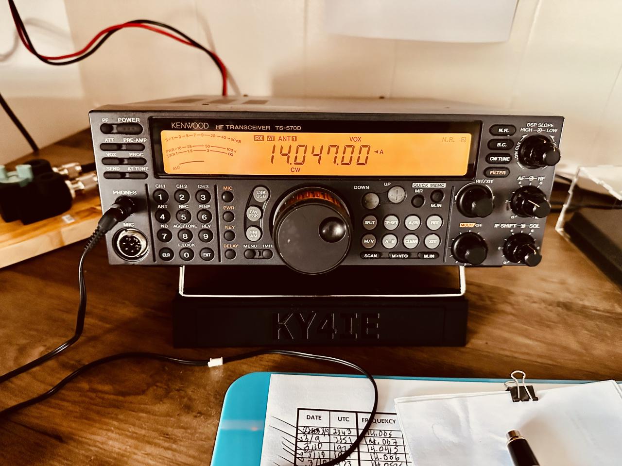 Kenwood TS-570D Transceiver in excellent condition. New memory battery. 500 Hz CW filter. $450 shipped CONUS. Payment by personal check, Venmo friends and family, cashier’s check.