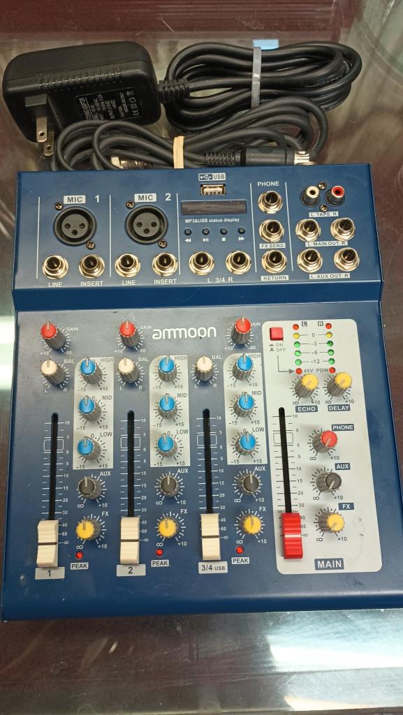 Ammoon 3 channel mixing board, has phantom voltage, with power supply and cable. No return. $35 plus shipping. PayPal, Venmo.