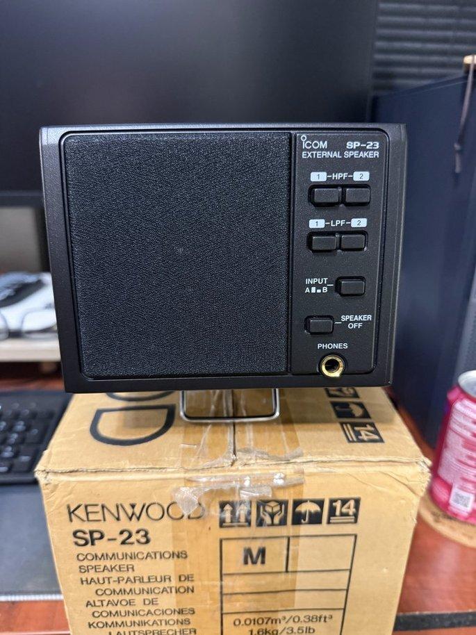 ICOM SP-23 External Speaker, Base Station Type, 8 ohms, 6 ft. Cord Length, 1/8 in. Male Plugs (3.5mm). Also, original box. Works on numerous HF radios. Excess to my needs. Speaker looks like new. Check out my feedback on QTH. All sales final due to part swappers. More pictures upon request. Will accept Zelle and USPS money order. $160.00 shipped.