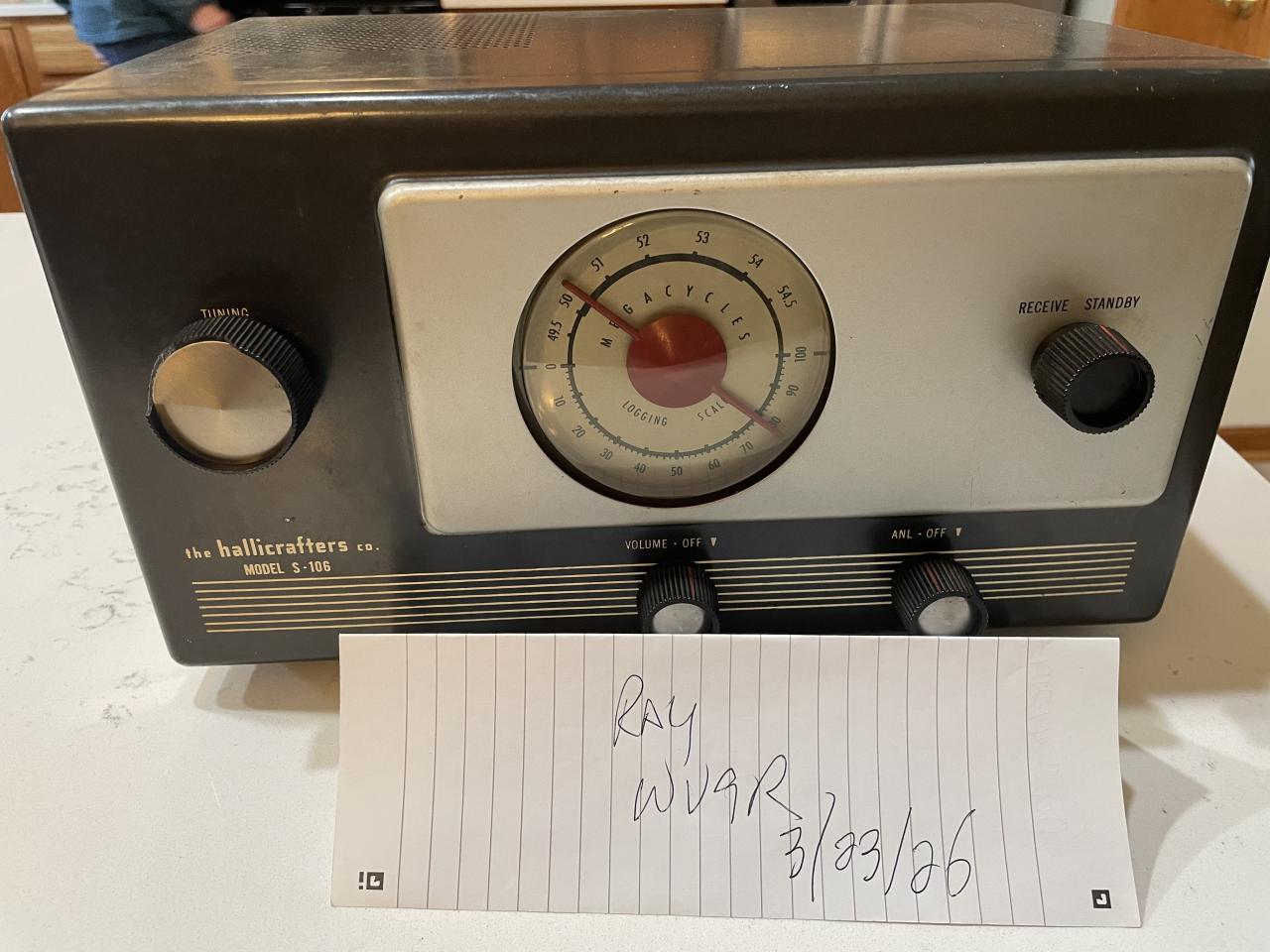 Hallicrafters S-106 receiver in VGC. All of the paper caps have been replaced, all of the bad tubes have been replaced, and a new polarized cord has been installed. As with all vintage equipment there are no returns. Please feel free to contact me with any questions. More pics are available I'll sell the S-106 for 85 shipped conus. PayPal preferred for payment.