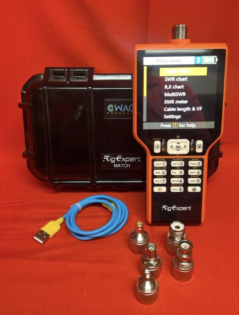 Excelllent condition! Comes with accessories and CWAG products custom molded case ($79 value https://www.etsy.com/listing/1868848050/rigexpert-match-antenna-analyzer-storage?ref=share_ios_native_control) plus accessories. Supports up to 70Mhz natively and can be upgraded via software to over 500MHz.