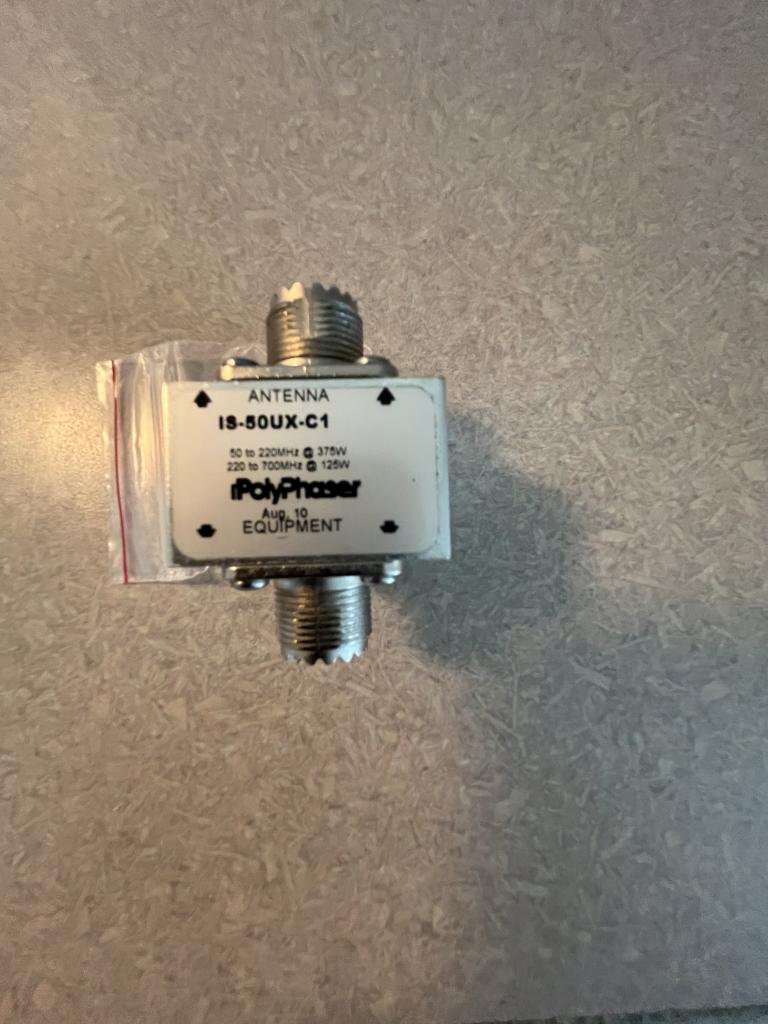 POLYPHASER IS-50UX-C1. VHF-UHF HAS NOT BEEN OUTSIDE , IT WAS INSIDE A seal BOX IN SIDE. WHERE ALL CONNECTIONS WERE MADE . w/ mounting screws $ 50.00 + SHIPPING /. PAYPAL.