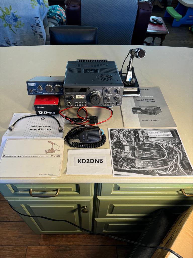 Comes with three Kenwood filters for SSB (Stock 2.4 kHz & optional 1.8 kHz) and CW (optional 500 Hz), hand mic, optional KW MC-50 mic & manual, dc power cable, original TS-130S manual. Also includes an external matching optional KW antenna tuner model AT-130 with manual, ac/dc adapter for lights and jumper coax.