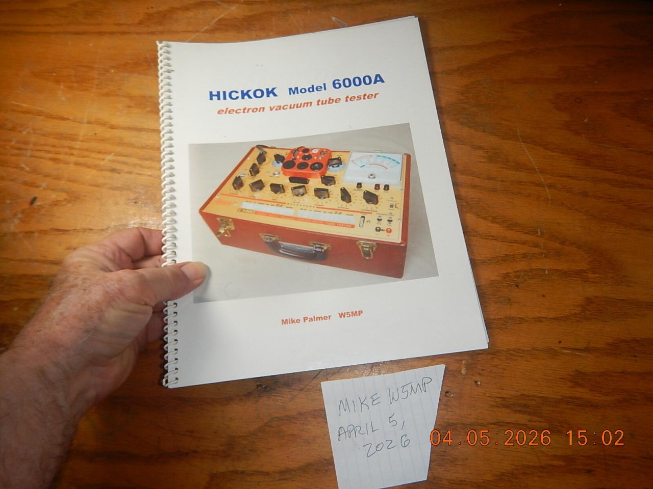 I have a fine condition reproduction MANUAL for the great Hickok model 6000A electron vacuum tube tester. It details operation, calibration, care & use. Also has the 6000A schematic and a complete parts list. I made 9 photos but only allowed 1 here. I'll package well for safe arrival at your QTH. Coming from Houston, Texas. Sell Hickok 6000A Operator & Maintenance MANUAL for $25 and I pay for shipping via UPS Ground service. E-mail or call anytime. Mike W5MP