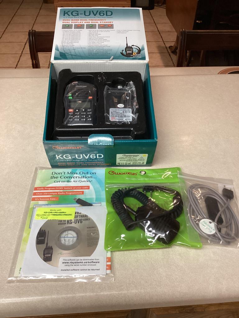 Selling a Wouxun KG-UV6D, VHF/UHF handheld. In excellent condition with brand new battery. Works 100%. Comes with charger, new wouxun Microphone, box, and RT Systems programming software and cable. Used very little. Sold as is, no returns. Selling for 100.00 shipped to your door, United States only. I Accept Zelle, and USPS money order only. Contact Mason, 214 293-4050.