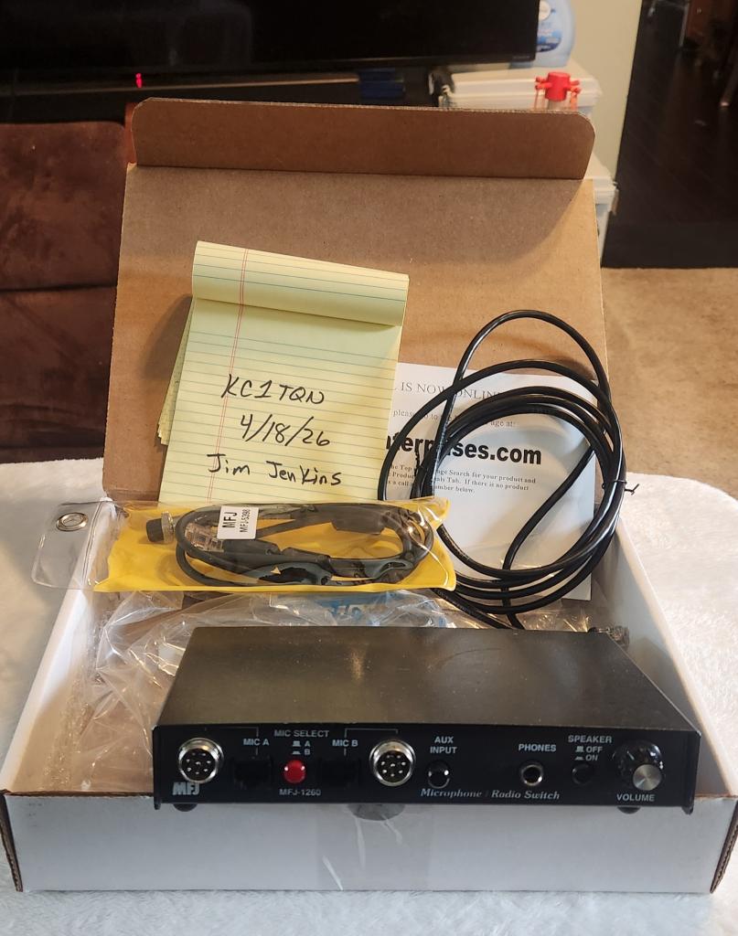 Like New MFJ1260. Was using with my ftdx10. 1 radio to 2 microphones. Cables and box included.