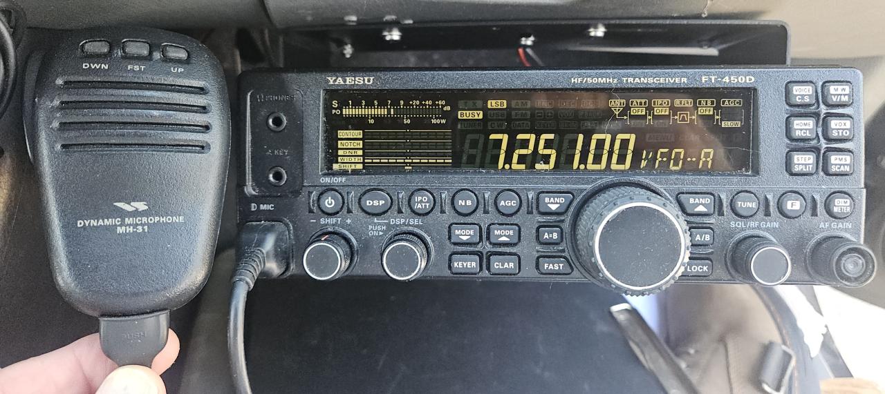 Been running this FT-450D in my truck. It works perfectly and has the latest firmware upgrade installed. High res pic shows some dust but is in good shape. Comes with mobile mounting bracket, mic, power cord, and USB-63 programing cable. Makes a perfect mobile HF rig or back up. $425.00 including shipping to lower 48. Prefer Zelle for payment if possible. Can call or text 678-965-0116 (Google Voice num) for more info, etc. 73, Gary/N4day.