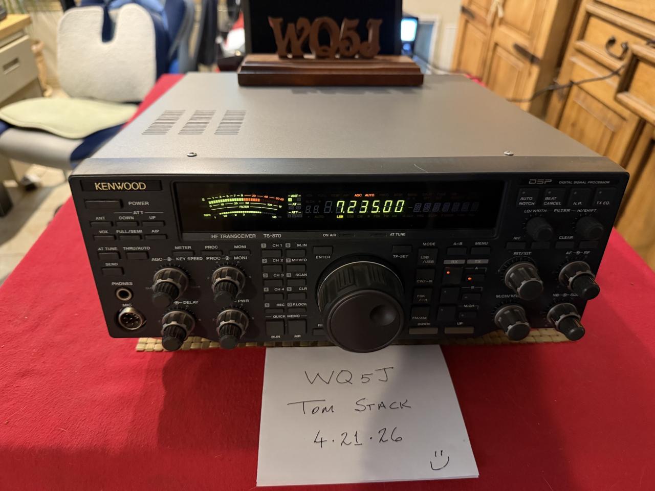 Comes with mic, manual and power cord --- Super clean, no smoke and works perfect. One of Kenwood's 'top of the line' transceivers --- excellent receive capabilities with the low and high band width filters.