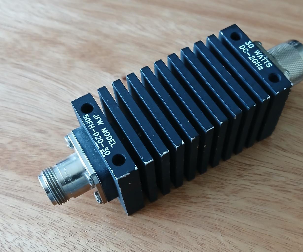 Selling my JFW Industries 20 dB Attenuator. Rated at 30 Watt with Type N connectors. In very good condition, with very minimal wear. US shipping only, payment with Money Order, on Zelle. $35 Shipped.