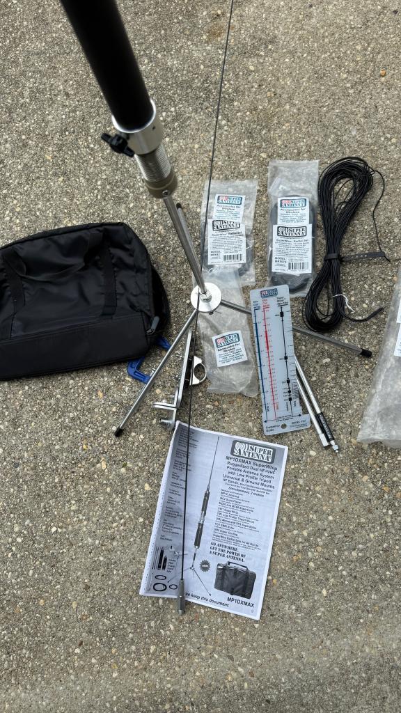 Ideal for quick set up portable antenna POTA, etc. I only used a couple times so it is in nearly new condition. Everything you need ready to go, includes the telescoping whip and the flexible super whip. $275.00 shipped CONUS. Will take PayPal or Venmo.