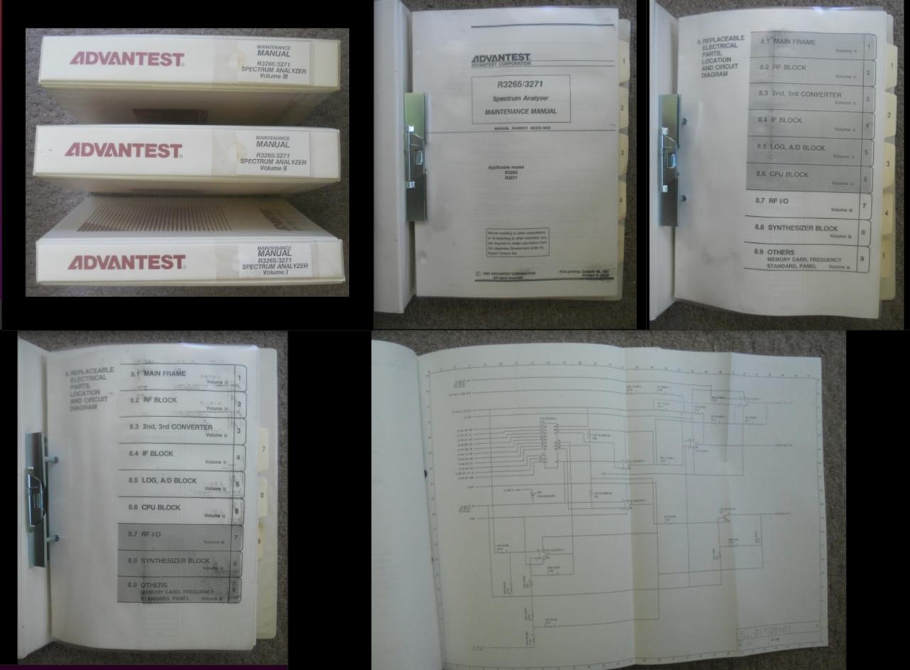 This 3 volume set is an original printed maintenance (service) manual bought from Advantest for their R3265/3271 spectrum analyzer. Page size 8-1/4 inch by 11-3/4 inches. Some foldouts are over 30 inches long. Price without the 3 binders is $85. Price with the binders is $105. Note: the pages are not 3-hole punched. Prices include shipping to USA addresses only. Payment via PayPal.